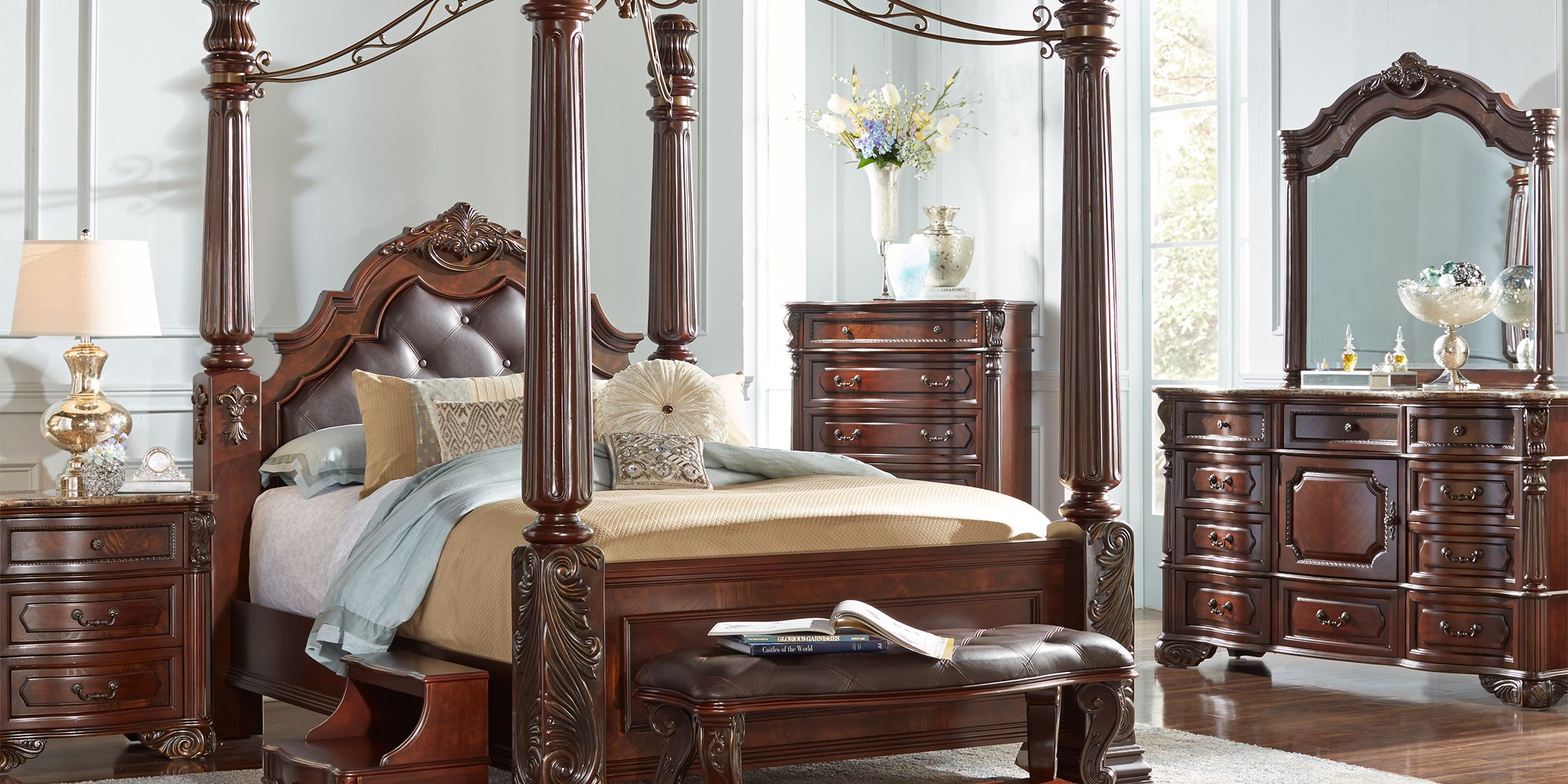 26885 picardy dresser 64 x 22 x 37h. Includes headboard, footboard, posts, canopy and rails. This set includes the bed, nightstand, dresser, mirror and chest. The ashley north shore furniture bedroom collection by millenium combines traditional design with modern sophistication. The canopy bed features a removable canopy atop four majestic columns and an upholstered headboard, providing. A queen canopy bedroom set brings a touch of privacy and comfort to your room. Rent to own bedroom furniture with king, queen, full, and twin sized beds. Color beiges browns golds grays silvers whites. Nightstand measures 34 x 20.5 x 32 h. Mirror measures 48 x 2.5 x 54 h. Spiral pilasters, intricate flourishes, and floral motifs adorn dark rich wood in this luxurious bedroom collection that brings elegance and grace to any home. Our large selection, expert advice, and excellent prices will help you find queen bedroom sets that fit your style and budget. Take the hard part out of coordinating your bedroom furniture with one of coleman furniture's bedroom sets.